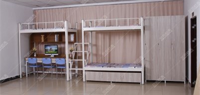 還可以選擇塑膠擋板,在上鋪再也不擔(dān)心掉小物品;防滑紋的樓梯腳踏板,防滑,還有夜光踏板,晚上也可以清楚看到。上述我說的是常規(guī)的宿舍家具雙層鐵床,艾尚宿舍家具還可以再方便一點(diǎn),不僅有雙層鐵床,還有公寓床,很多的配套產(chǎn)品。