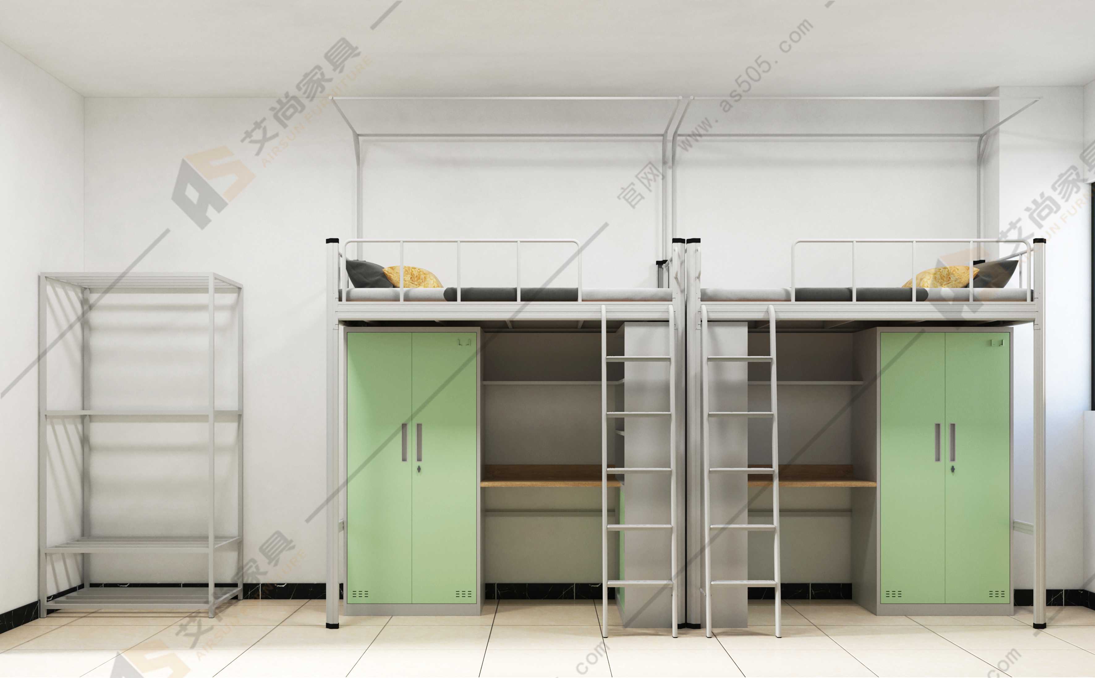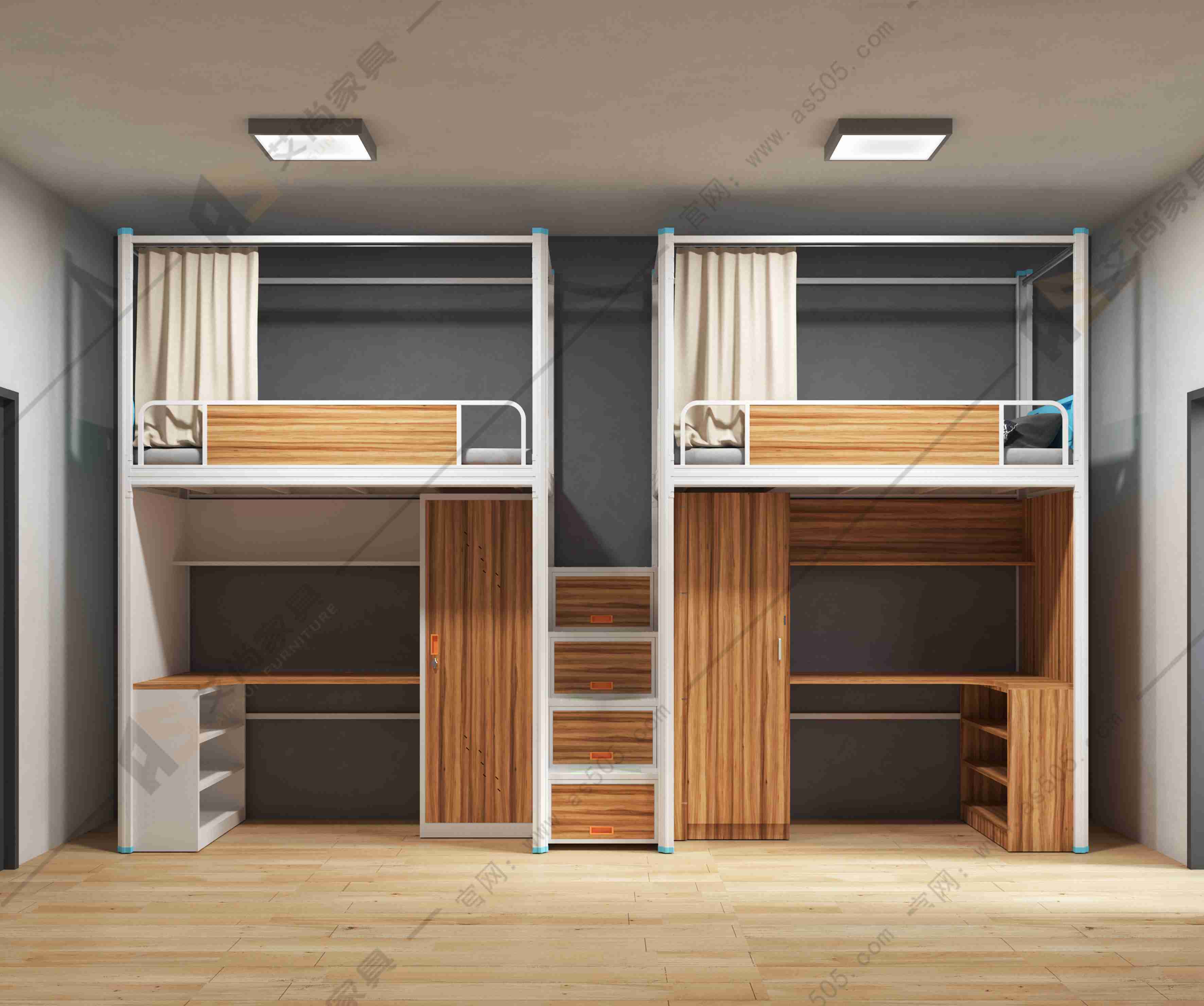 艾尚學生宿舍床樓梯板表面都有防滑紋,防止上樓梯時不小心滑倒。表面有多條加強筋,并且加高護欄,質量且穩(wěn)固。學生公寓床的每個接觸棱角均打磨光滑,能夠保護質量。您所擔憂的我們都想到了!