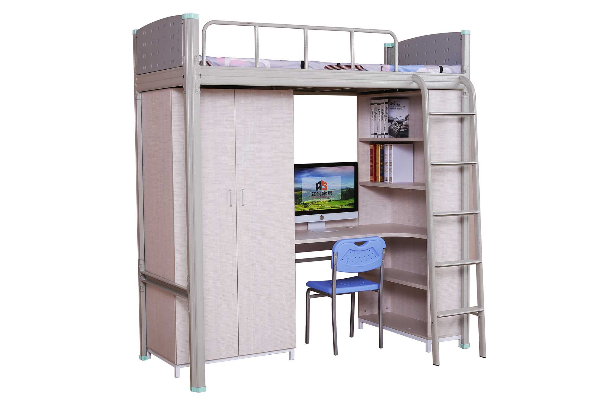 組合學(xué)生公寓床在大學(xué)里面是非常普及的,收納功能很強(qiáng),有衣柜、儲物柜、書柜等,上方床鋪可以睡覺,下方書桌可以學(xué)習(xí)辦公,可以把生活跟學(xué)習(xí)相互結(jié)合,又互不影響。