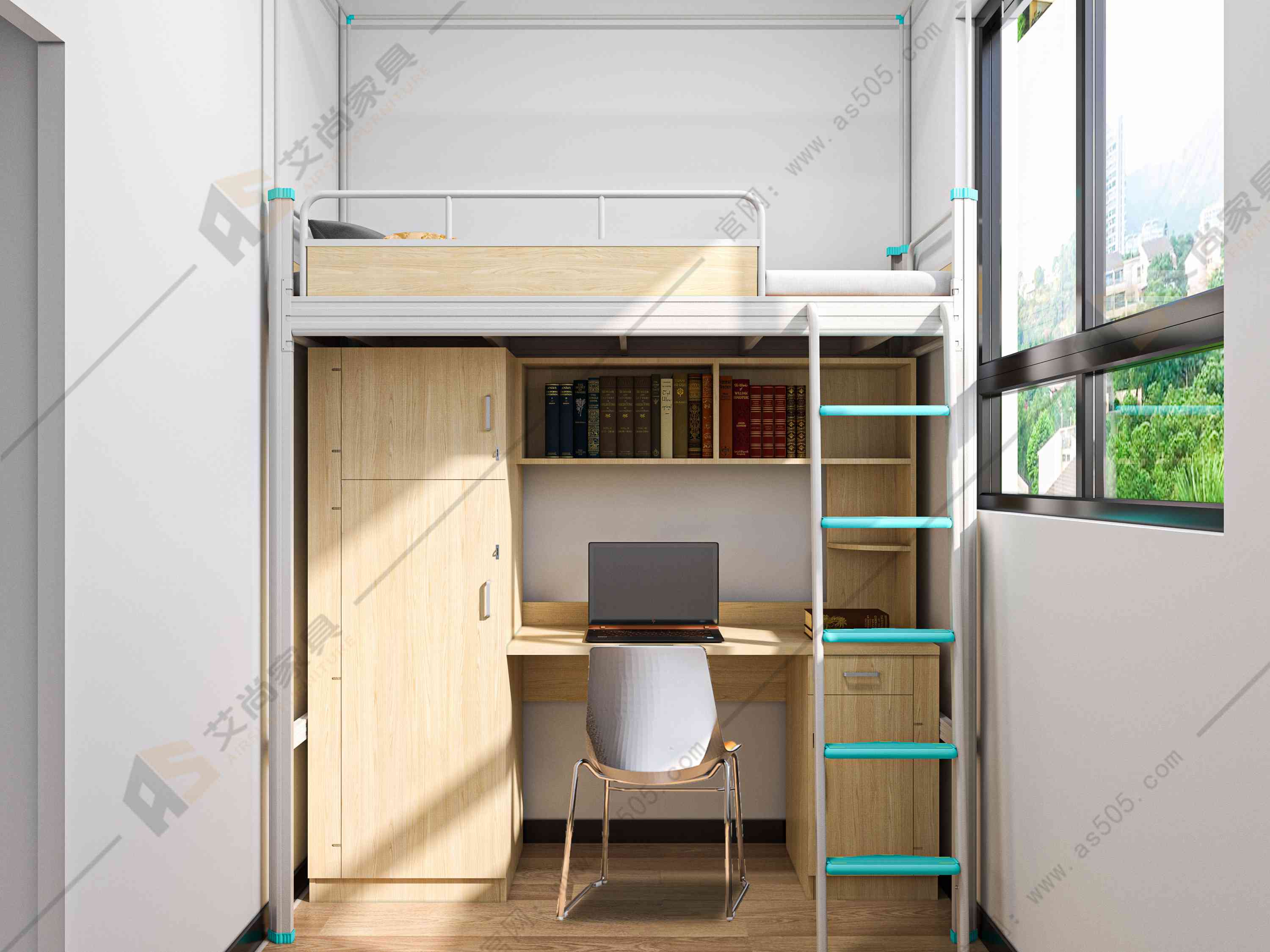 2. 多功能性:艾尚家具學(xué)生公寓組合床設(shè)計考慮到學(xué)生的多種需求,床架上通常配備了書桌、衣柜、書架等功能。這樣,學(xué)生可以在同一個床上完成睡眠、學(xué)習(xí)和儲物等多項活動,提高了宿舍的使用效率。