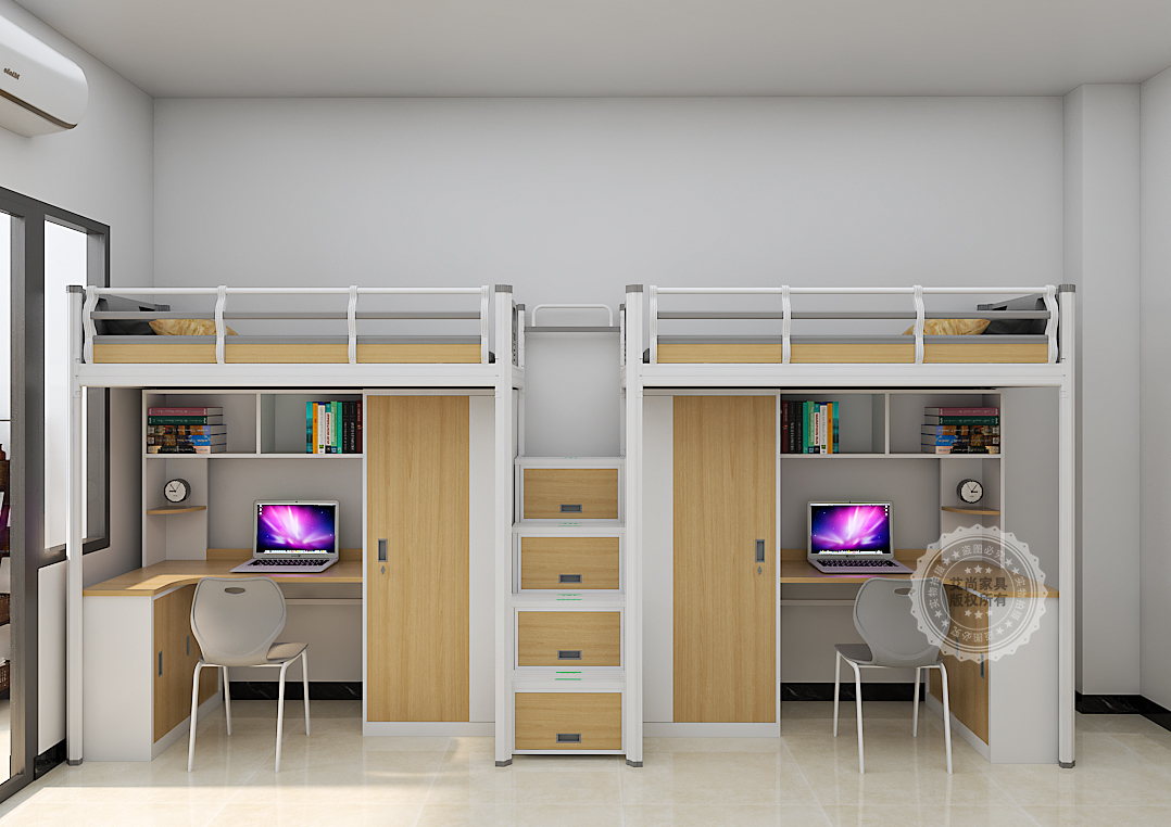 3. 豐富收納空間:深入研究用戶生活習(xí)慣與空間需求,床下配備大容量?jī)?chǔ)物柜、抽屜等收納空間。合理利用垂直空間,讓用戶輕松整理衣物、生活用品、書(shū)籍等物品,告別宿舍雜亂,打造整潔有序的生活環(huán)境。